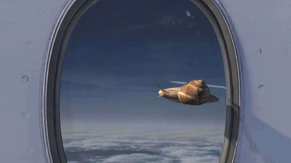 Au sein d’un aéroport, sur une aile d’avion, sous nos yeux, une troupe d’escargots exécute une magnifique chorégraphie, jusque dans les airs !